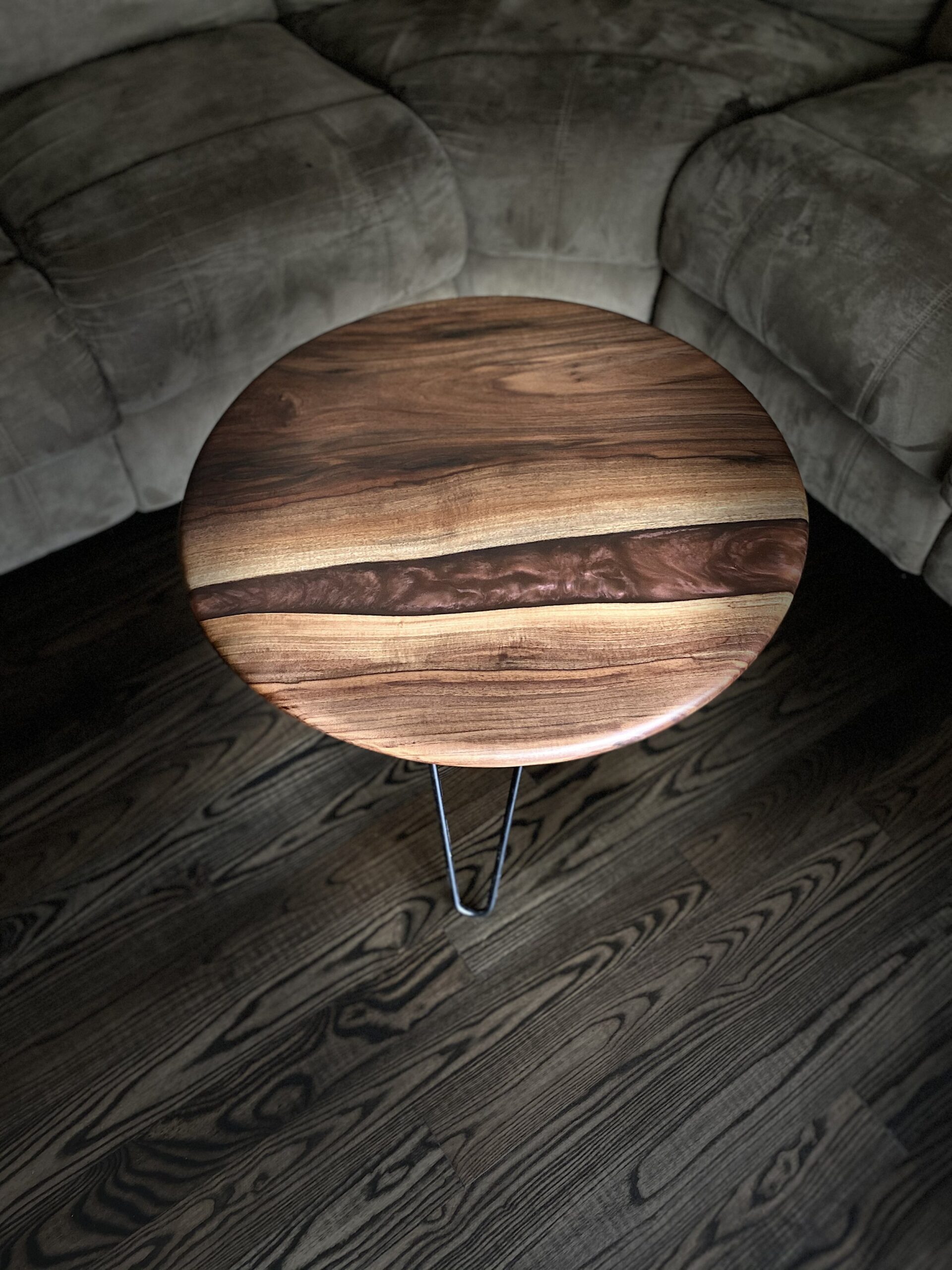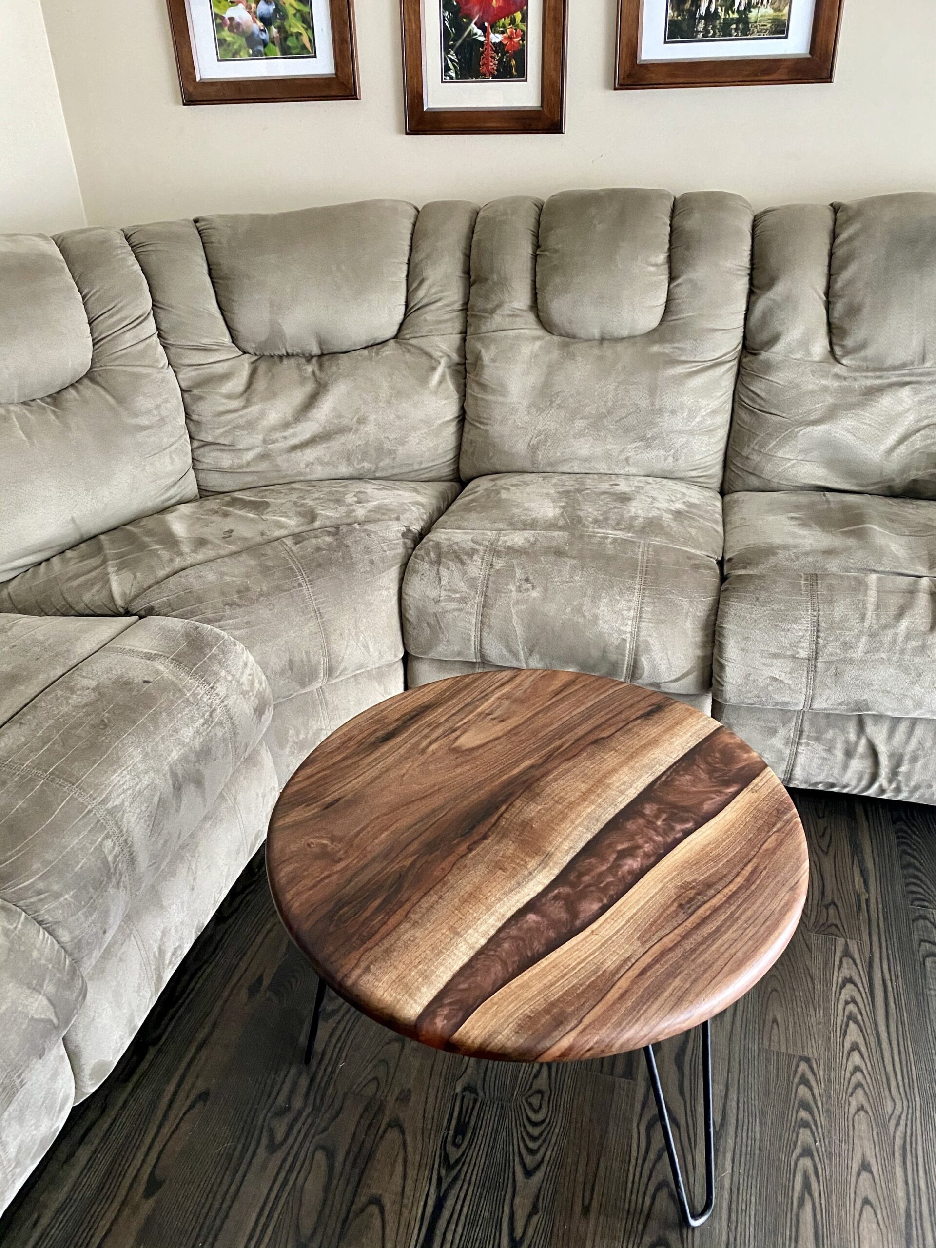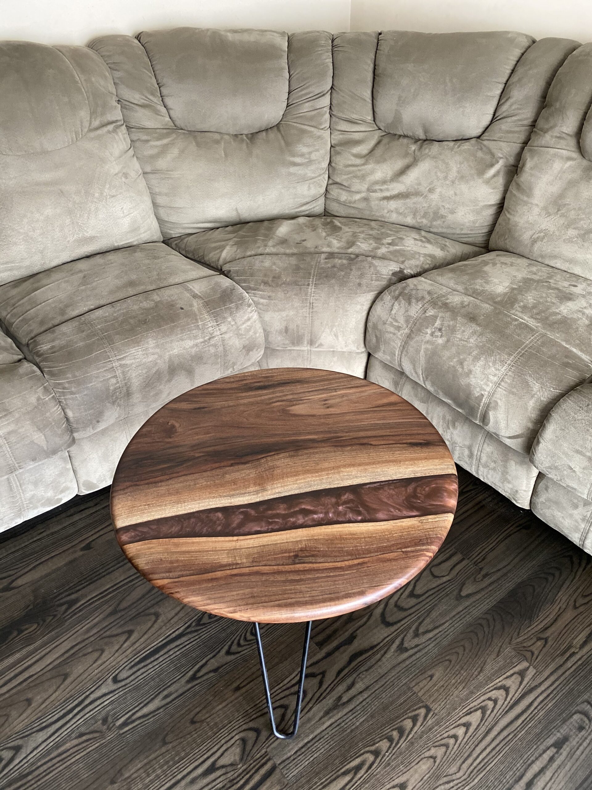Black Walnut Coffee table made from locally harvest Walnut by Yours truly! Comes with the popular hairpin legs. This stock was air dried for several years for best colour results. A personal Fav ready to go!